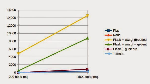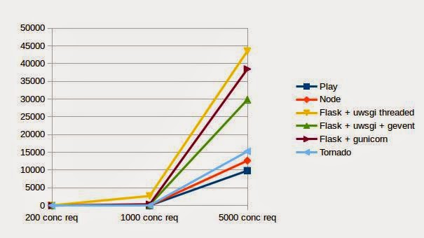 Battle: Play, Node.js, Flask, uwsgi, gevent, gunicorn, Torando and MongoDB